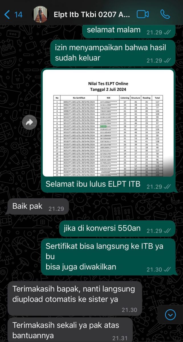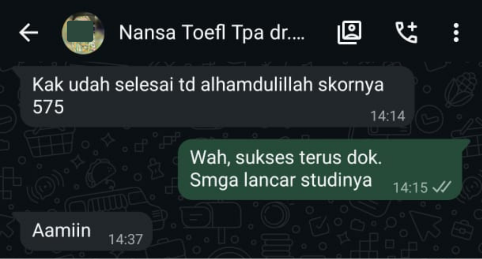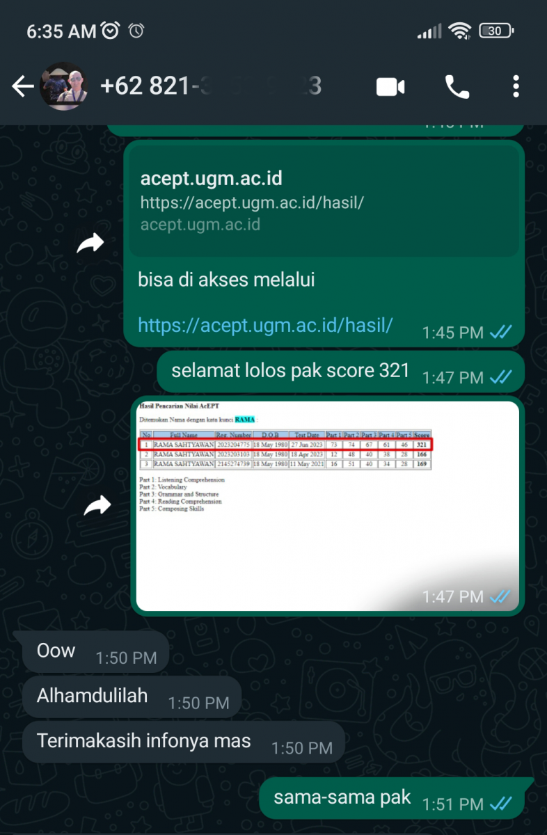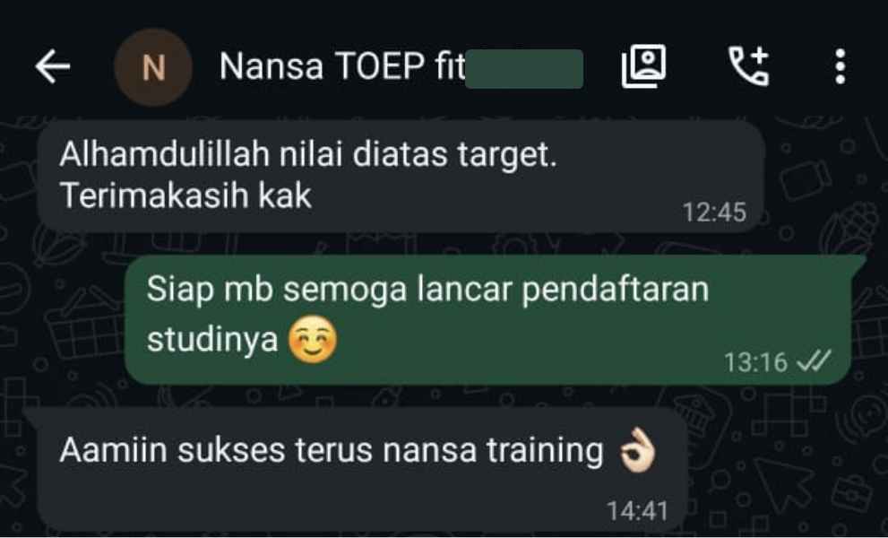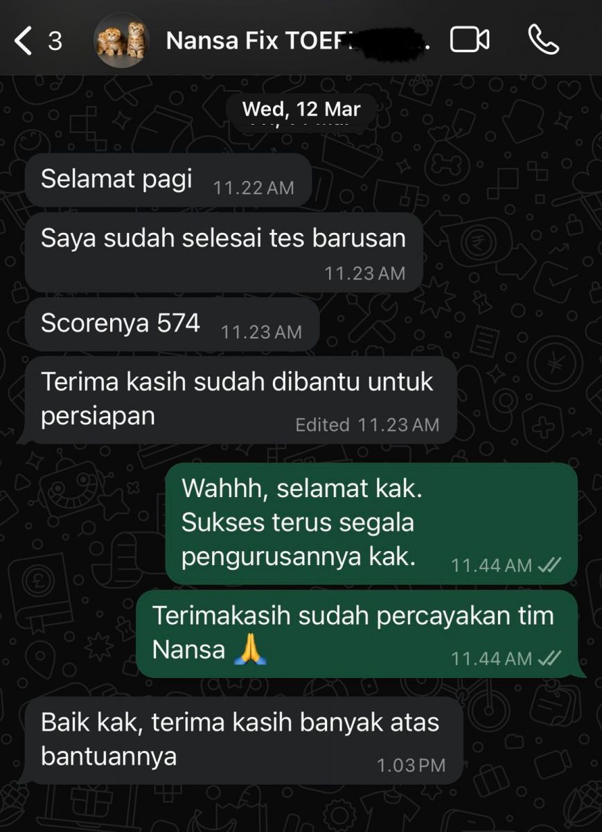 Testimoni LULUS Tes Acept UGM, TOEFL, TOEP, ELPT, TKBI SERDOS