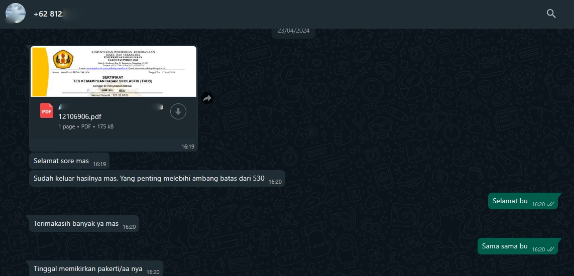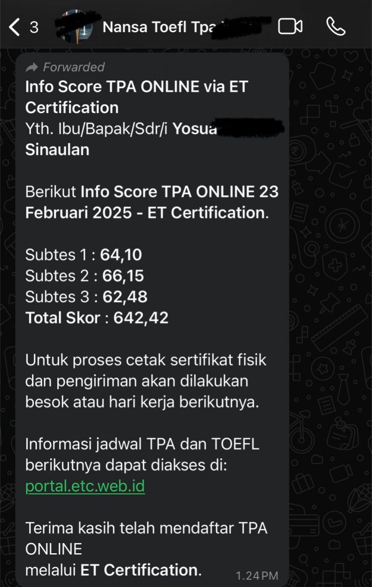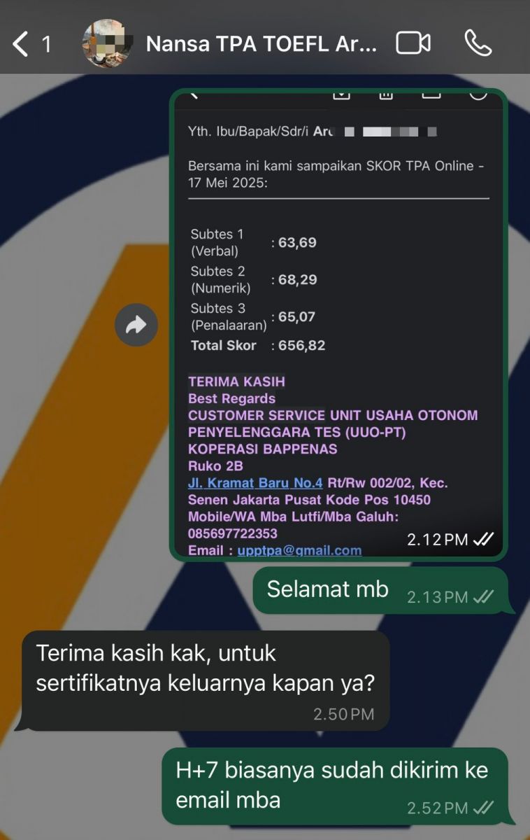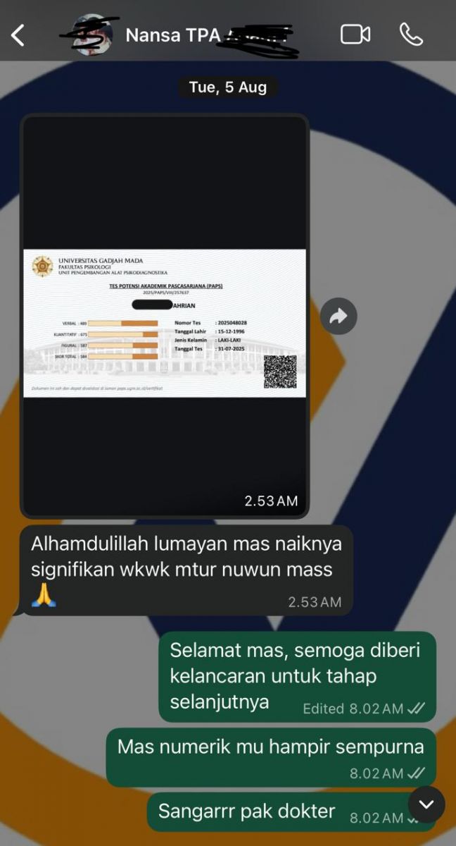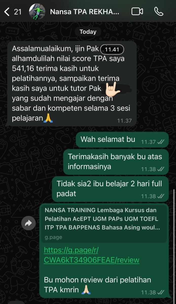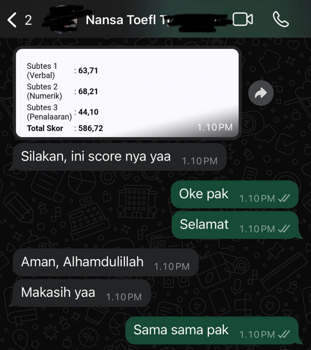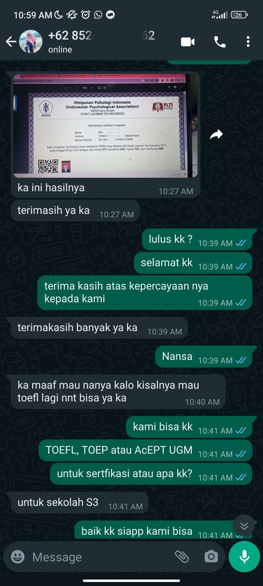 Testimoni LULUS Tes Acept UGM, TOEFL, TOEP, ELPT, TKBI SERDOS