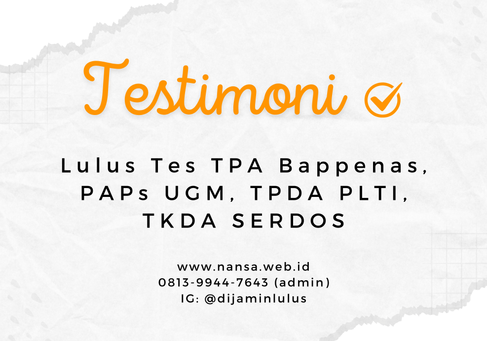 Testimoni LULUS Tes PAPs TPDA TKDA SERDOS TPA Bappenas