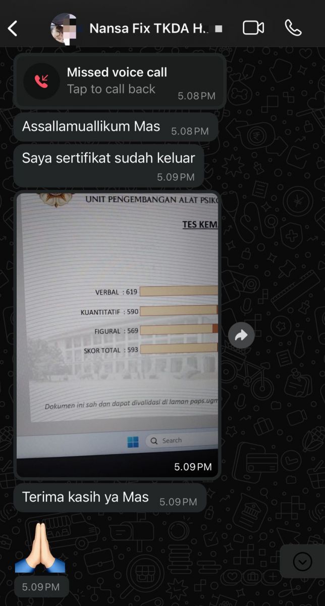 Testimoni LULUS Tes PAPs TPDA TKDA SERDOS TPA Bappenas